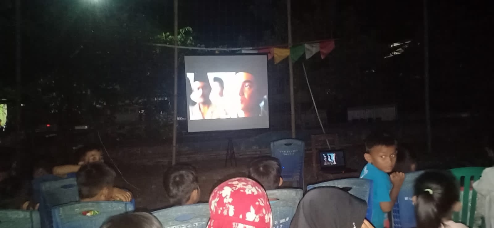 TNI Bersama Waga Desa Ongko Nonton Film Perjuangan Di Lokasi TMMD